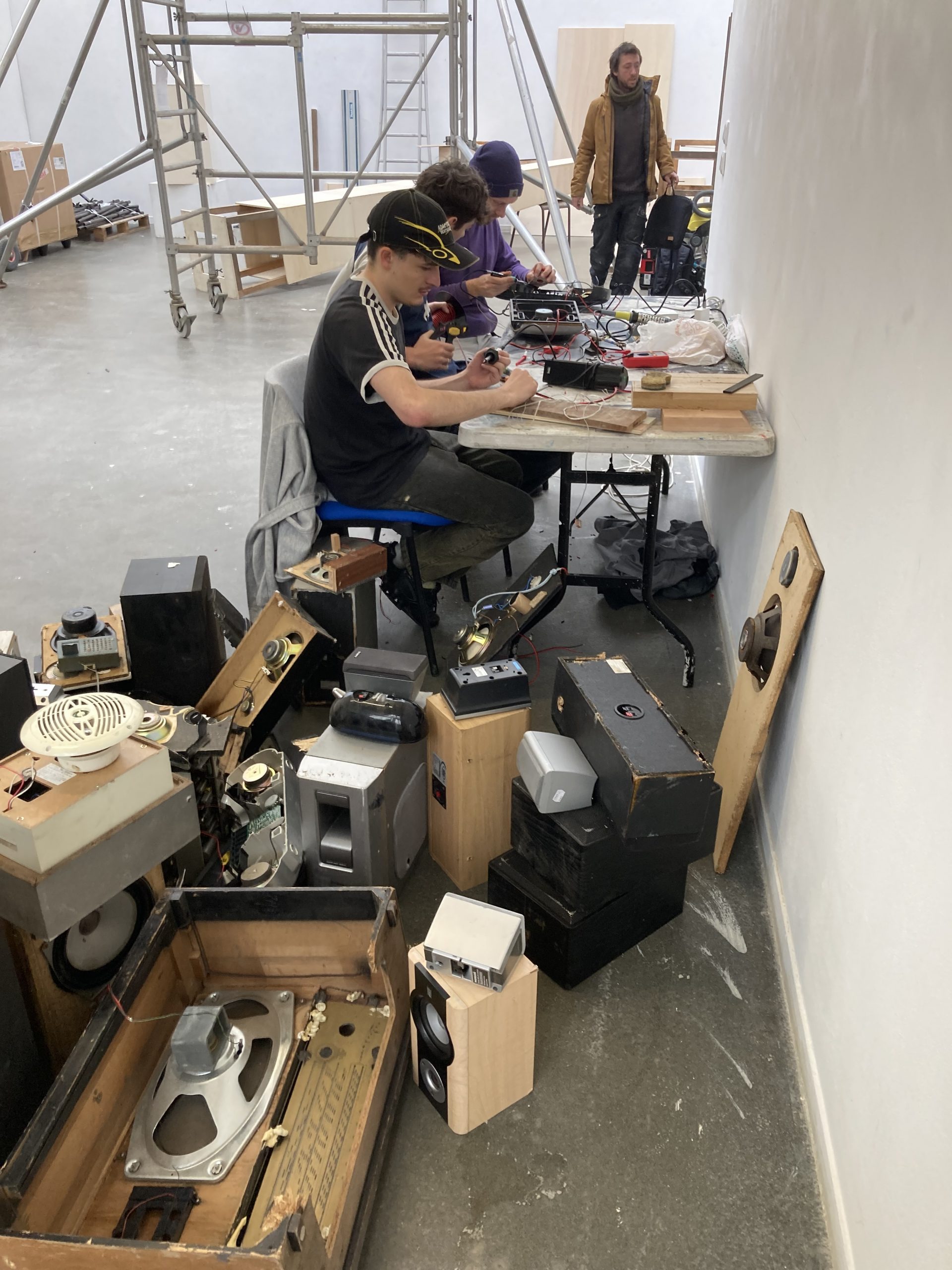The “Obelisk Sonore” installation is on display at the TALM-Le Mans School of Art and Design, located on Avenue de Rostov-sur-le-Don, one of the key venues for the Le Mans Sonore event www.sortirensarthe.com www.billetweb.fr . This work illustrates the ecological and innovative dimension of the event, promoting recycling and interaction between technology and the public.