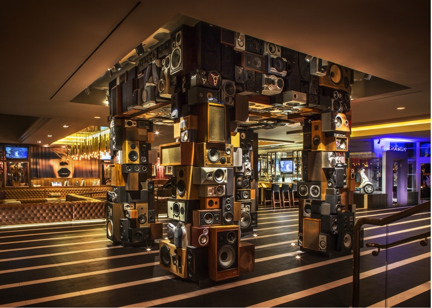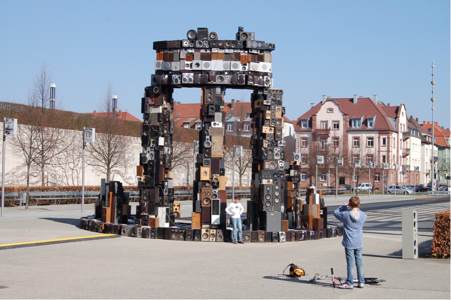 Maubrey’s artistic methodology centers on the innovative use of recycled materials, particularly speakers. As he explains, “I use recycled loudspeakers much in the same way that a sculptor uses clay or wood: as modern building blocks to create artworks.” However, the purpose of these sculptures goes beyond aesthetic purposes. Their primary function, according to Maubrey, is “to supply sound to a public space and create a public ‘hotspot.'”